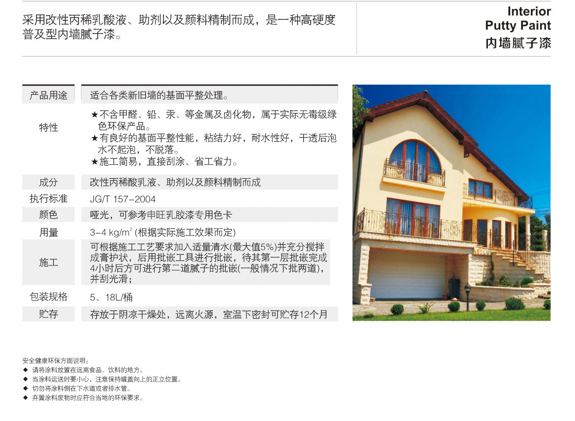 內(nèi)墻膩?zhàn)悠?/span>采用改性丙稀乳酸液、助劑以及顏料精制而成,是一種高硬度普及型內(nèi)墻膩?zhàn)悠帷?/p> 咨詢(xún)熱線 4000550313